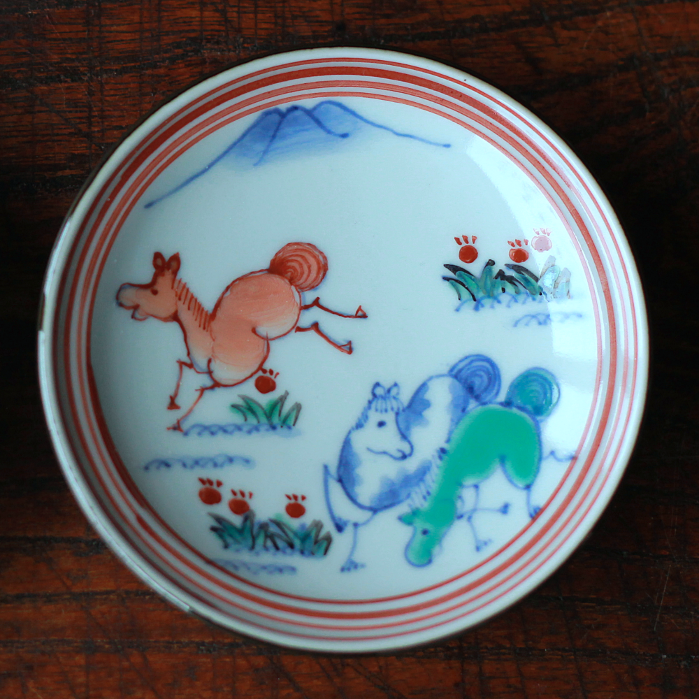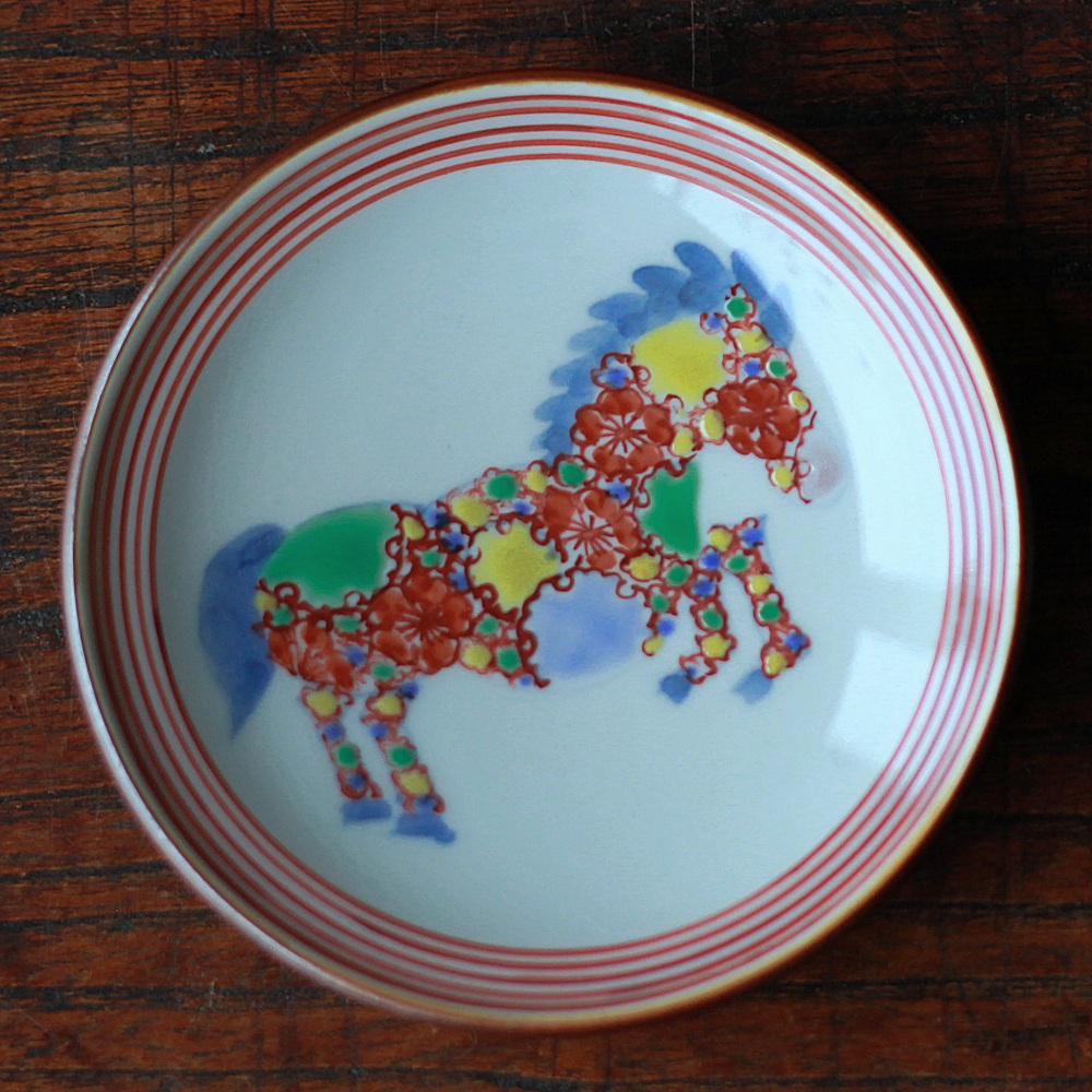 たなかふみえ 干支縁付小皿「遊馬図」