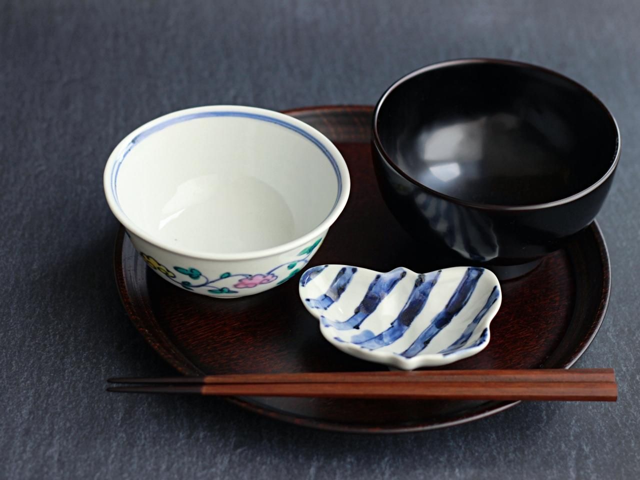 染付の斜め縞がアクセントとなってお膳を引き締めてくれます。