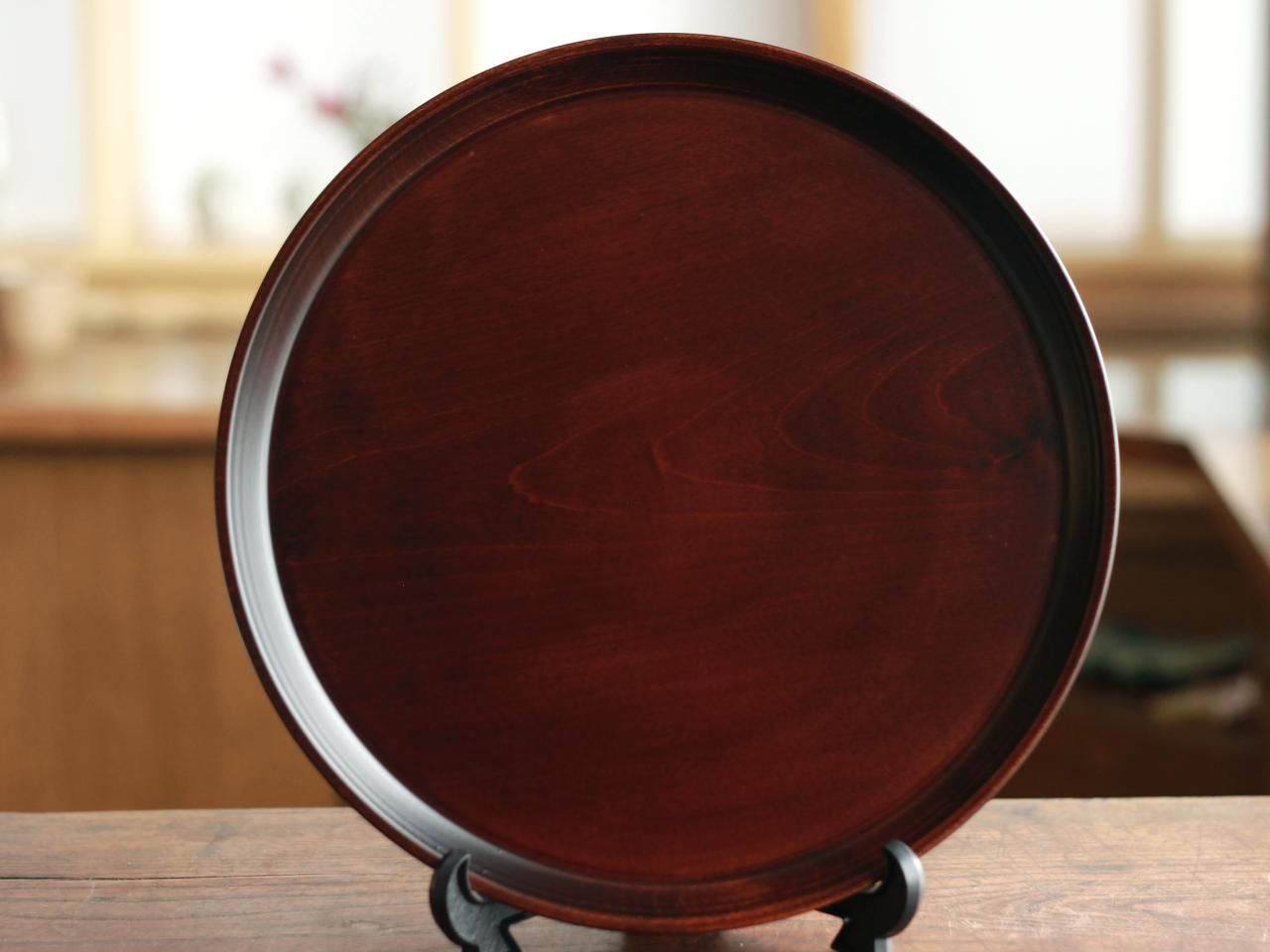 木目の主張が控えめな、やさしい印象の丸盆です。