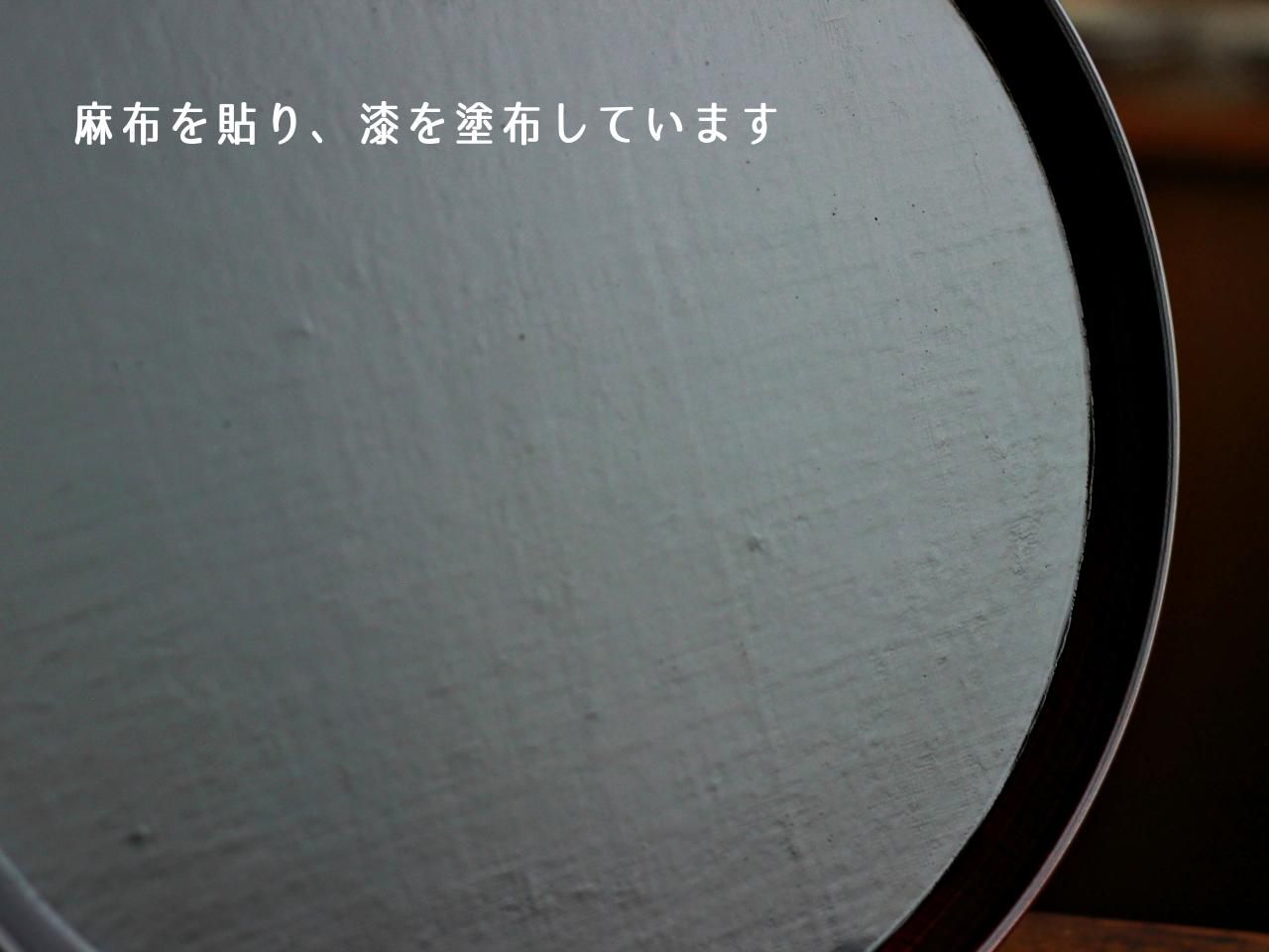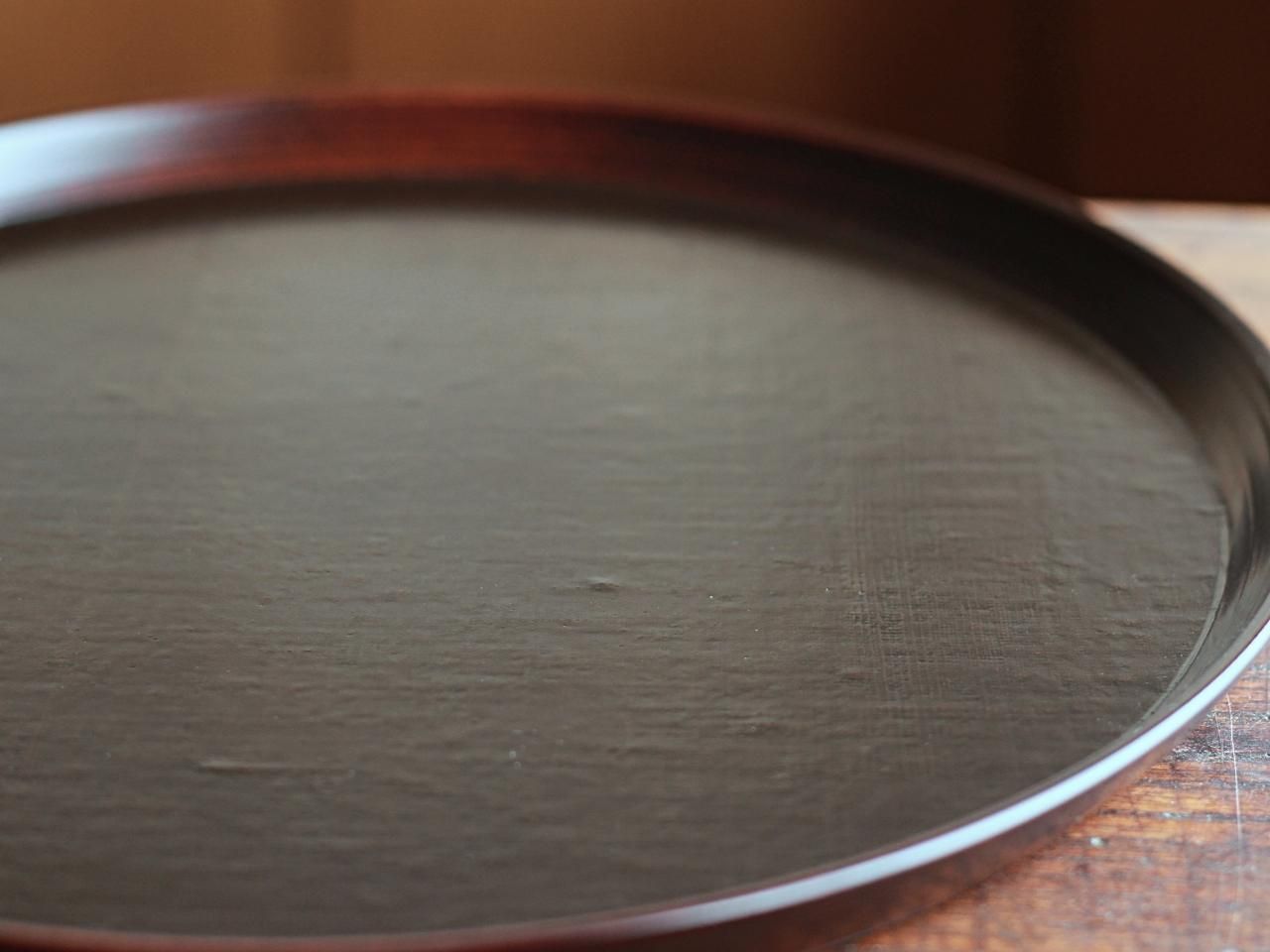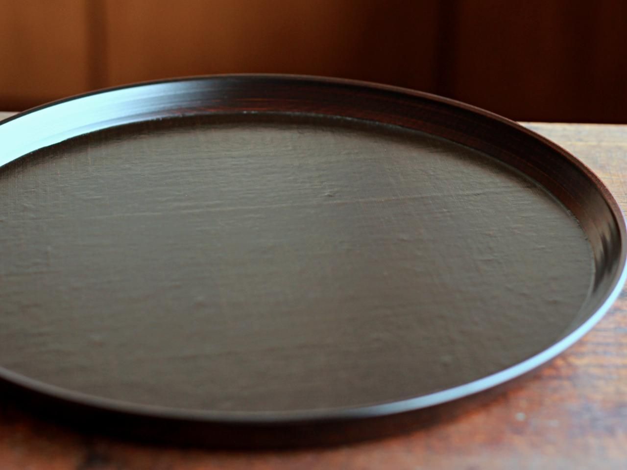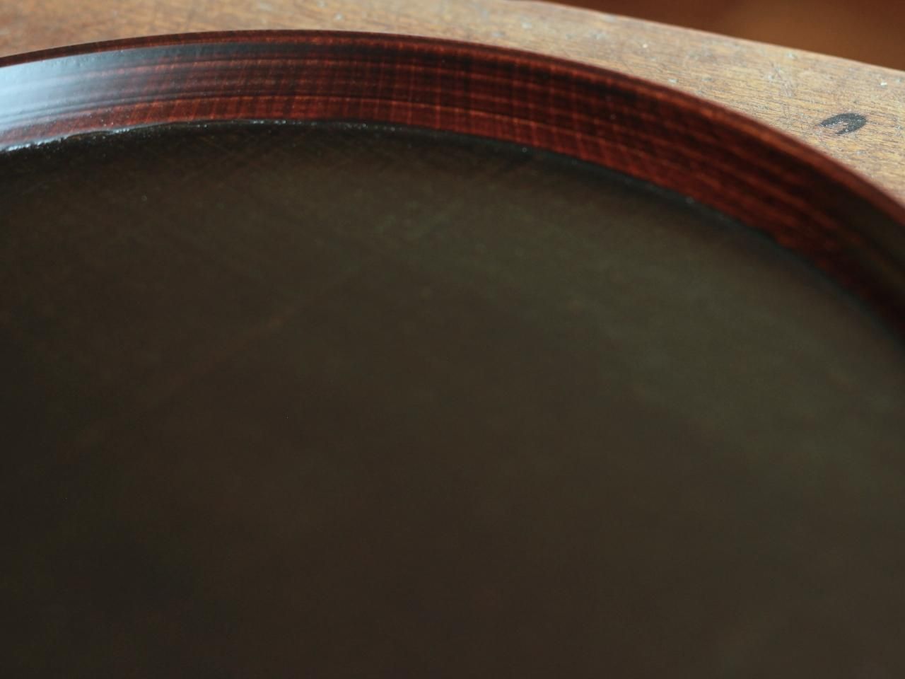 フチの立ち上がりは顔料を含まない漆を塗る溜塗りで木目がみえており、黒と溜のツートンになっています。